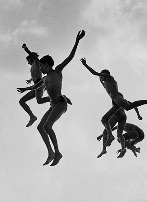 Si algo más diferencia a Schuh del resto de fotógrafos es el hecho de que no le importe que sus instantáneas no sean una representación exacta de una realidad en el momento en el que ocurre. Él apostaba por el posado y cuando veía una situación que le gustaba llegaba a pedir a sus protagonistas que la repitieran una y otra vez hasta conseguir la imagen que quería. Es el caso de la fotografía “El salto al agua”, utilizada como imagen de la exposición.